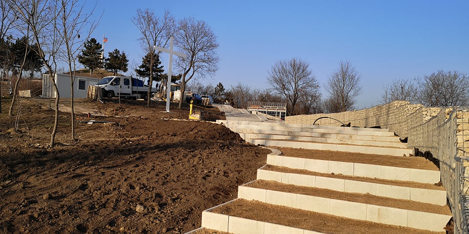 Ez kilátóként, parkolóként, de adott esetben rendezvényterületként is funkcionálhat majd. Az itt épülő színpad szerkezete is áll már. Több helyen pedig kertészeti munkák is történtek már az emlékműnél.