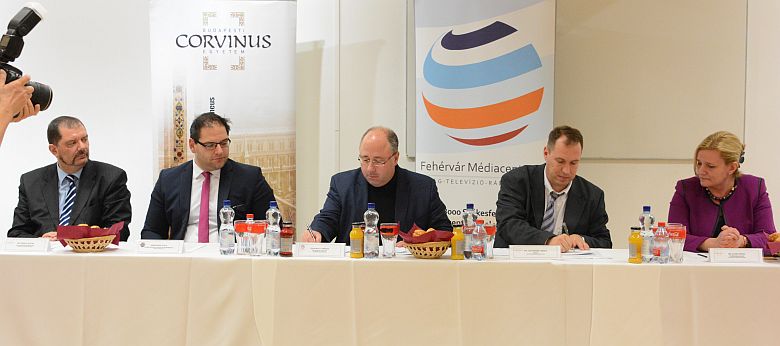 Mészáros Attila alpolgármester elmondta, a város büszke arra, hogy a Budapesti Corvinus Egyetem Székesfehérvárt választotta vidéki képzése helyszínéül: „Az elmúlt hónapok nagyon sok újdonságot hoztak a fehérvári felsőoktatásban. Hosszú előkészítő munka után beindult és egyre szélesedik a duális képzések köre, valamint büszkék vagyunk arra, hogy a Corvinus Egyetem is indít fehérvári képzéseket jövő szeptembertől. Szeretném megköszönni a ma létrejövő megállapodásban együttműködő partnerek munkáját Székesfehérvár városa nevében és kifejezni örömömet, hogy a kommunikáció és médiatudomány szakos hallgatók szakmai gyakorlatukat a Fehérvár Médiacentrumban szerezhetik meg.”