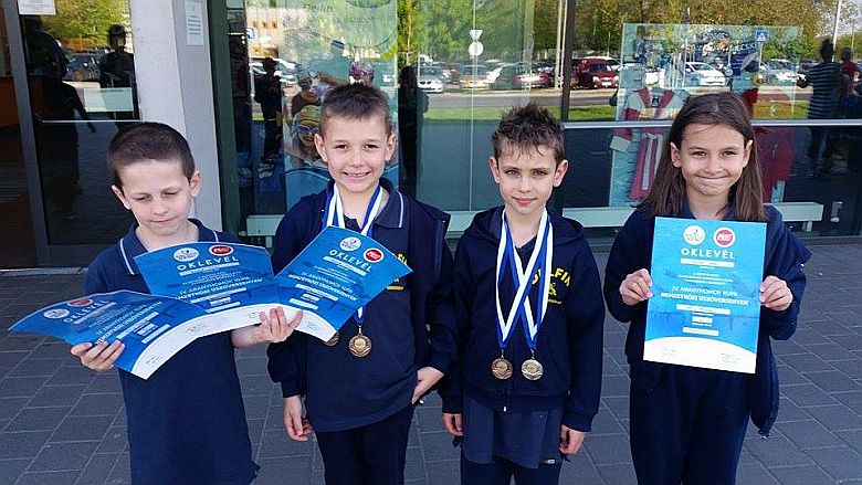 A Delfin SE ezen a versenyzőit négy érem és több oklevél mellett az időeredmények miatt illeti dicséret, mindenki megjavította eddig eredményét. ( A képen balról Juhász Milán, Szabó Kiss Zétény, Hlatki Marcell, Bérczi Kata.) De nemcsak itt szerepeltek jóla delfinesek. Hat országból 334 versenyzője állt rajthoz Győrben, a III.ARENA OPEN Kvalifikációs úszóversenyen. Itt Ács Barbara( 2003) 3 ezüst, 1 bronz, Kotnyek Bettina (2001) 1 arany, 4 ezüst, Csanádi Zsombor (1998) 2 bronz, Czifra Patrik(2001) pedig 1 arany, 2 ezüst és 2 bronzéremmel zárt.