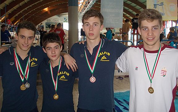 A képen: Csanádi Zsombor, Czifra Patrik, Fekete Kristóf, Fekete Ferenc, négy "delfin", öt éremmel.