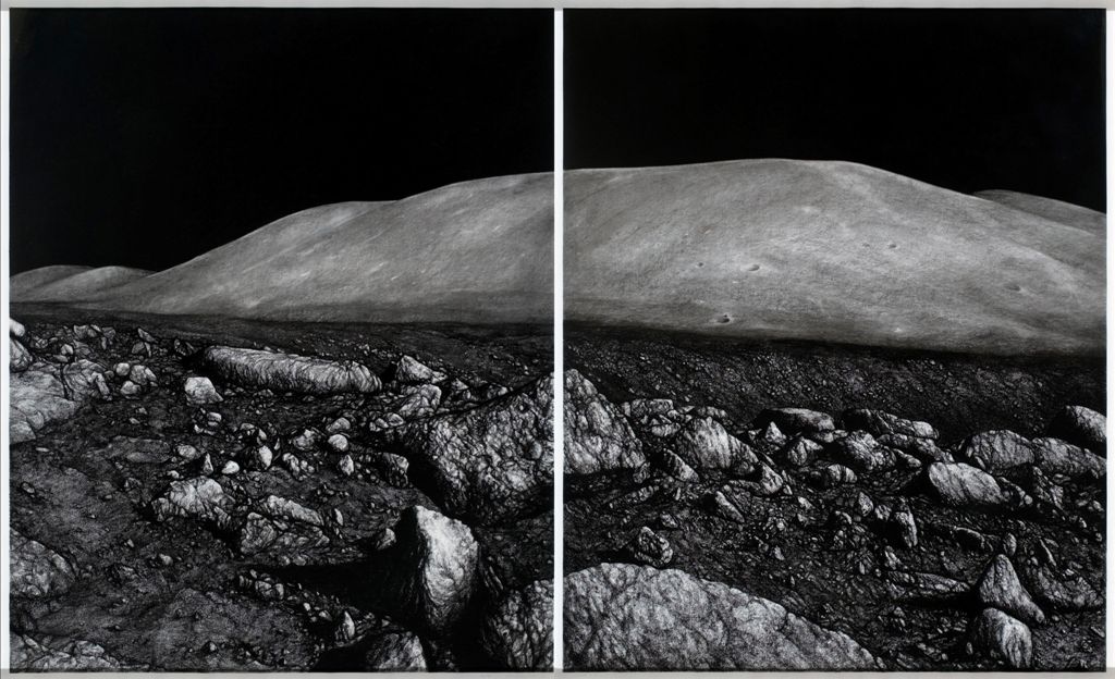 A Luna-sorozat alapját az Apollo-program során fotózott dokumentumképek adják, amelyeknek azon túl, hogy egy-egy holdséta körülményeit dokumentálják, gyakran művészeti érték is tulajdonítható. A Luna-sorozat rajzai részletekbe menően pontos természetrajzok, melyek első ránézésre tájképek, a valóság realisztikus ábrázolásai, de közelebbről szemlélve őket inkább furcsa meditációk. A kiállítási anyaghoz tartozik még egy pasztell rajz, amely egy sűrű növényzetű földdarabkát mutat meg. A kép vizuális és gondolati kontrasztelemként jelenik meg a kiállításon. A holdtájkép-rajzok fekete-fehérek, a földi tájkép színes. Az általában nagyméretű – gyakran több méteres – papíralapú rajzok technikája: szén, grafit.