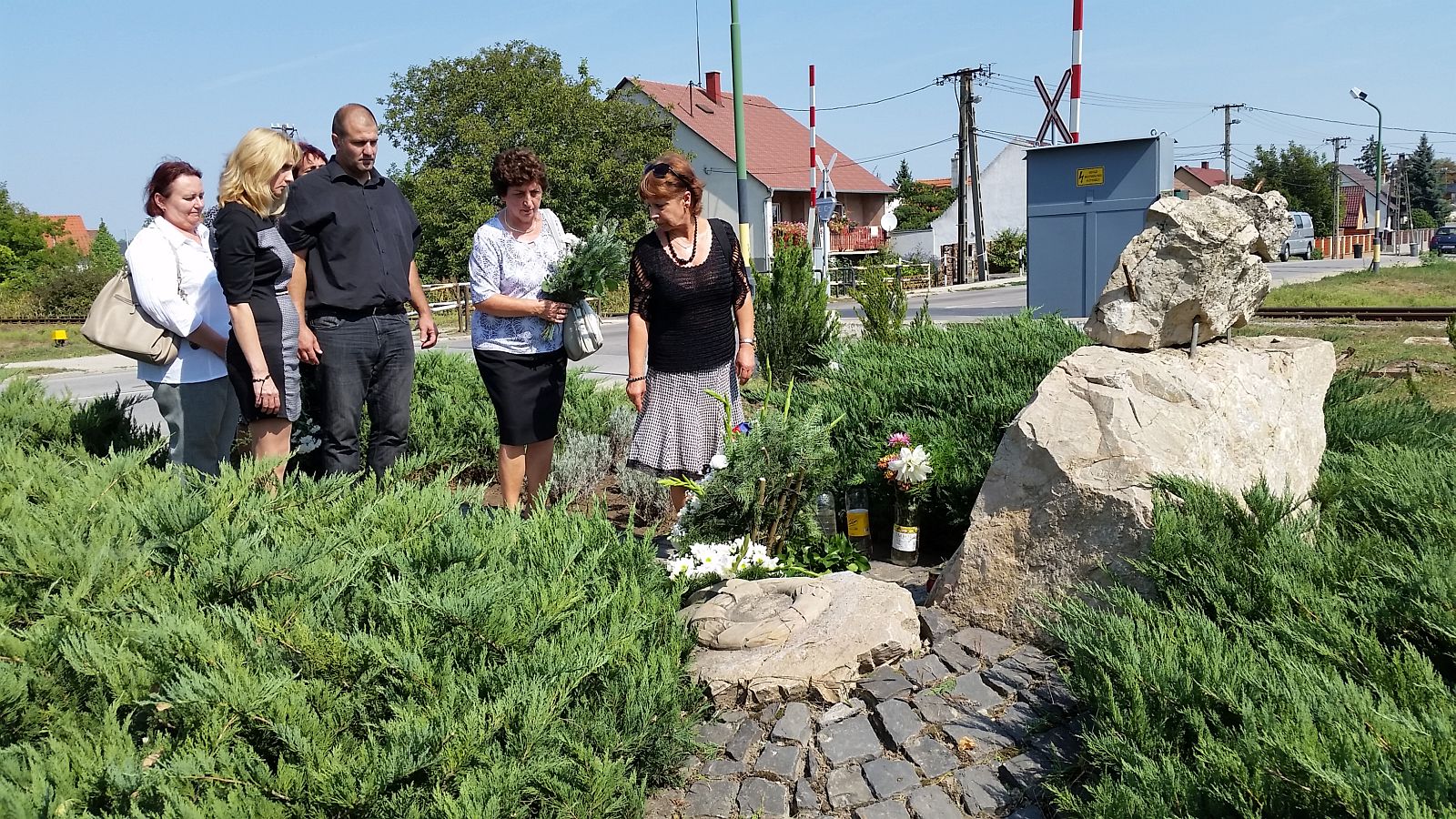 Kétyi József, akinek 29 éves felesége vesztette életét a tragédiában, az áldozatok emlékére minden esztendőben megemlékezést szervez. A baleset áldozatairól a családtagok, barátok és pedagógusok mellett a terület önkormányzati képviselője Szigli István valamint Szili Csaba a Vörösmarty Általános Iskola igazgatója is megemlékezett. Kétyi József beszédében felidézte azt a 34 évvel ezelőtti csütörtöki napot, ami úgy indult mint a többi. Reggel borús volt az ég, csöpögött az eső, majd kisütött a nap és kánikulába fordult a délelőtt. Ragyogó napsütés volt akkor is, amikor 11 óra 55 perckor az átjárónál vonat ütközött a 37-es busszal 16 ember halálát okozva.
