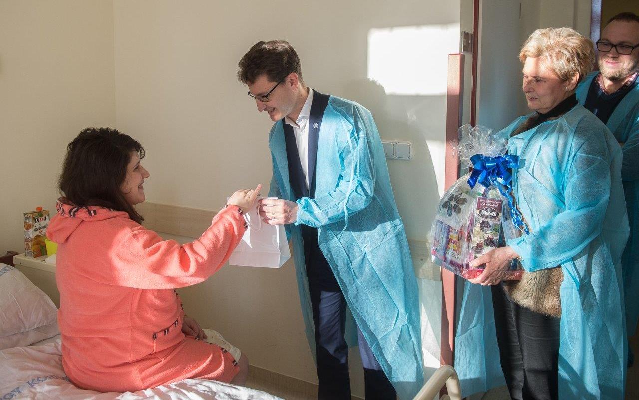 A látogatás keretében sor került annak az idén útjára indított „Székesfehérvári Születési Támogatási Program” ajándékainak az átadására is, aminek keretében a székesfehérvári lakcímre bejelentésre kerülő újszülöttek egy városi címerrel ellátott takarót, valamint egy 20 000 forint értékű ajándékutalványt és egy oklevelet kapnak. Ezt Balázs édesanyjának Molnár Tamás tanácsnok adta át. Majd az év első újszülöttjét és édesanyját Horváth-Tancsa Ágnes családügyi tanácsnok is különböző ajándékokkal köszöntötte fel. Az év második újszülöttjének és mamájának Juhász László tanácsnok adta át a városi babacsomagot, amit a kórház Szülészet-nőgyógyászati Osztályán lévő valamennyi székesfehérvári kisbaba megkapott. A polgármester és a jelenlévő önkormányzati képviselők valamennyi csecsemőt felkeresték, és felköszöntötték, édesanyjának gratuláltak.