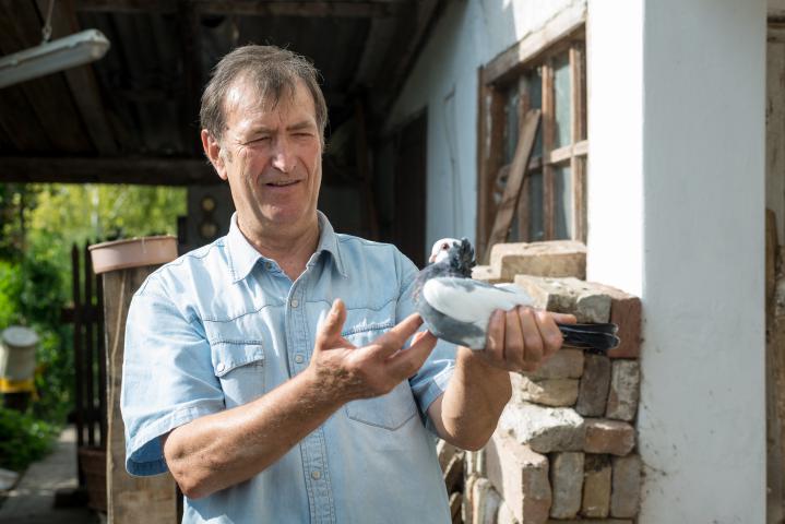 „Az Alföldről származom. Otthon, Jászladányban minden paraszti háznál volt galamb. A magtárak környékén, az eresz alatt fészkeltek. Talán a mostani városi fajtához tudnám őket hasonlítani, mert nem kellett őket oltani, etetni. Kijártak a mezőre az elhullott magvakat csipegetni. A háború után sokan ezeknek az állatoknak köszönhették, hogy életben maradtak. A számos jószágot az ellenség elvihette, de a galambokat nem volt olyan könnyű megfogni, mert elrepültek. Gyerekként én még ebbe a világba születtem bele. Édesanyámmal sokszor mentünk a piacra galambokat eladni. Húsz-huszonöt forint volt párja. Az öreg nénik szívesen vették őket, hiszen a galambhús jótékony hatásait mindenki ismerte. A harmincas években például a kórházakban a nyúlhús mellett ezt adták a betegeknek.” – mondta kedélyesen a galambász, majd óvatosan felemelte a háromszintes galambházhoz vezető kertkapu reteszét. Egy gyors mozdulattal a kertben is termett, és már zárta is az ajtót, nehogy Marcinak, az öt hónapos hófehér kaukázusi kutyának is kedve támadjon galambászni.