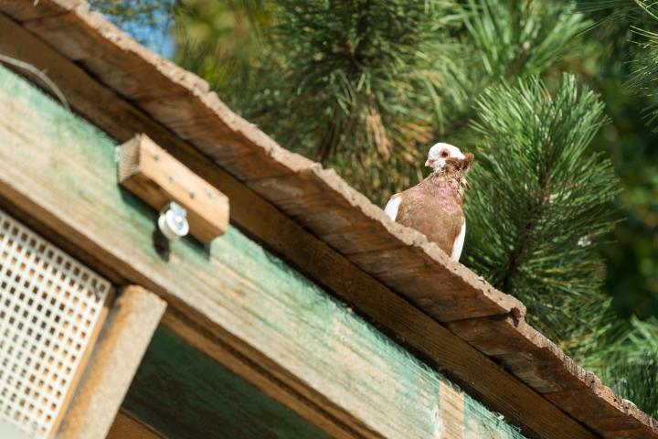 A galambház a kis tornyával inkább egy palotához hasonlított. A szomszédok felőli oldala zárt és meredek, hogy a madarak ne menjenek át. A déli oldal tetején, a parapetes, nyitott fészkek bejáratánál néhány példány élvezte a langyos, őszi napsütést. „A galambokat nem szabad bezárni, akkor érzik jól magukat, ha repülhetnek. Elvégre nem véletlen tartják őket a szabadság jelképeinek.” Szűcs Antal kinyitotta az alsó fészkek ajtaját, majd a kezében visszatért egy szívhátú székesfehérvári bukógalambbal. „Most vedlik, ilyenkor kevésbé mutatós, de még így is szépen kirajzolódik a hátán a minta. A feje fésűs. A szeméhez odamegy a rajz, amit fülőkének nevezünk. Ez most éppen kék, de van belőle vörös, sárga, fekete és ezüst színű.” – mutatta tudományos igényességgel a fajta jellegzetességeit.