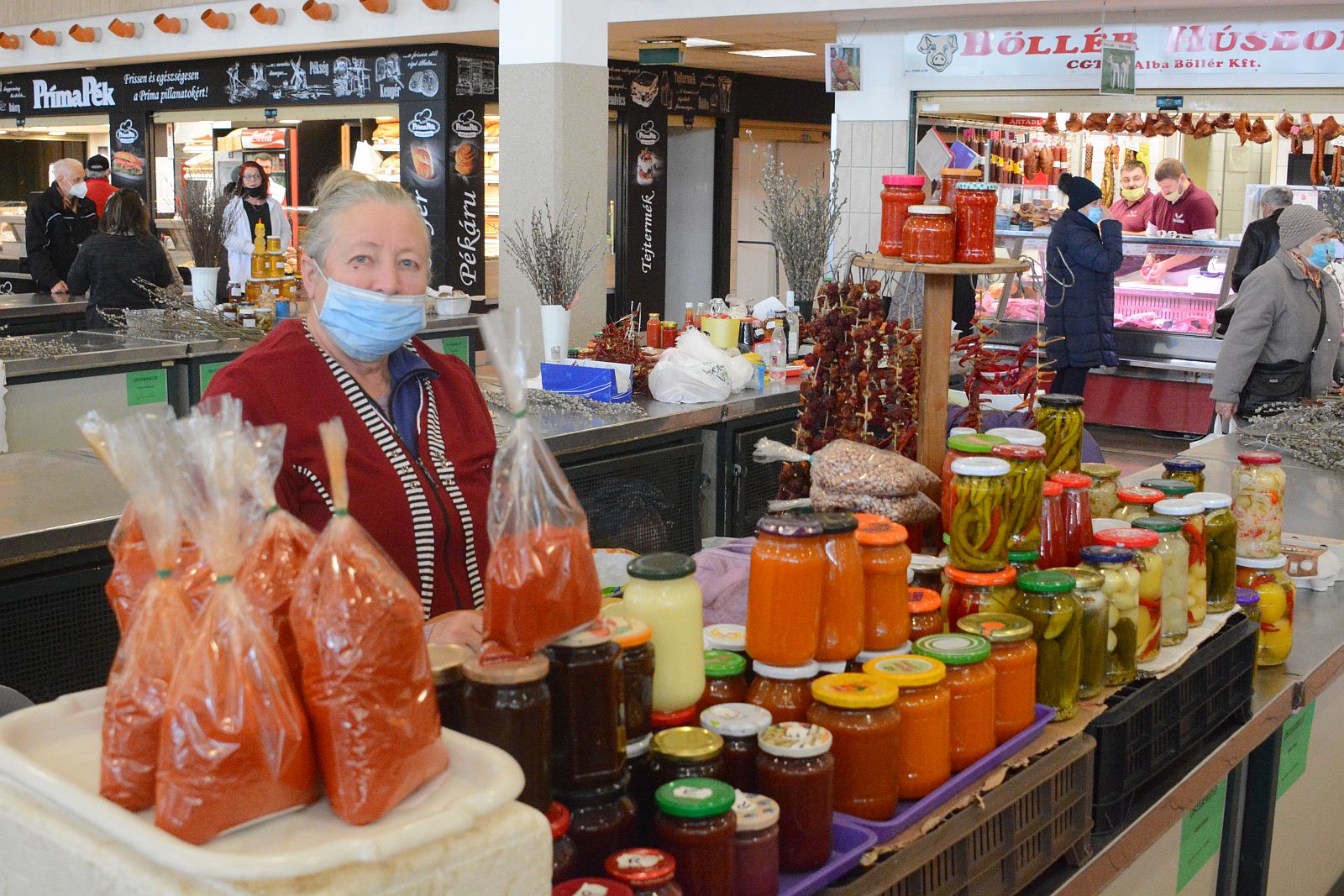 A tavasz közeledtével a zöldség-gyümölcs kereskedők termékei között lassan megjelennek a primőr áruk is. A galérián pedig büfé, kávézó, borozó és kifőzde is üzemel.