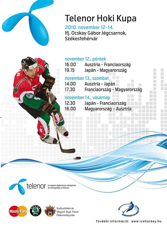 November 12 és 14 között Székesfehérváron az Ifj. Ocskay Gábor Jégcsarnokban rendezik a Telenor Hoki Kupát. Szerdán délelőtt a Magyar Király Szállóban a város polgármestere, az esemény védnöke dr. Cser-Palkovics András is ott volt a rangos sportesemény beharangozó sajtótájékoztatóján, melyen Tokaji Viktor és Horváth András játékosok mellett Kovács Csaba MJSZ szakmai alelnök, Ocskay Gábor szakosztály igazgató és Tóth István AV sportklub társelnök vett részt.