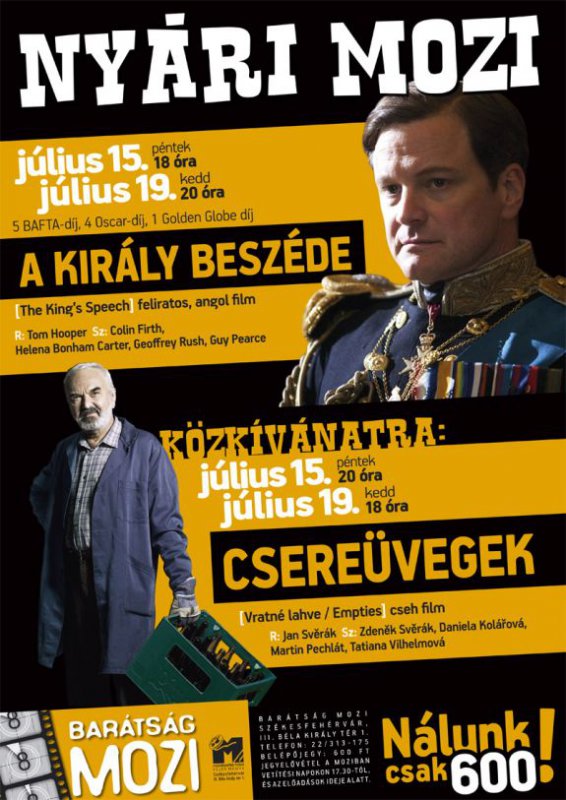 NYÁRI FILMVETÍTÉS A BARÁTSÁG MOZIBAN