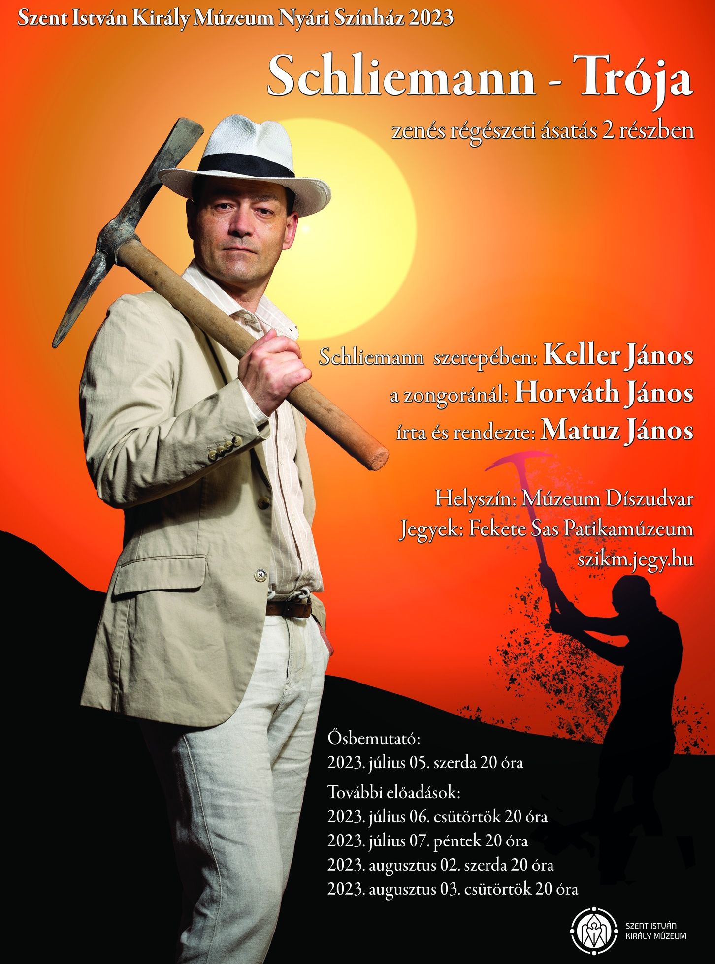 Különleges programmal készül a Szent István Király Múzeum, melynek díszudvara régész színháznak ad otthont. Az intézmény hagyományteremtő szándékkal indítja útjára az új kezdeményezést, melynek első előadása a Schliemann - Trója című zenés régészeti ásatás lesz két részben. A bemutató július 5-én, szerdán 20:00-kor lesz a Múzeum díszudvarán.