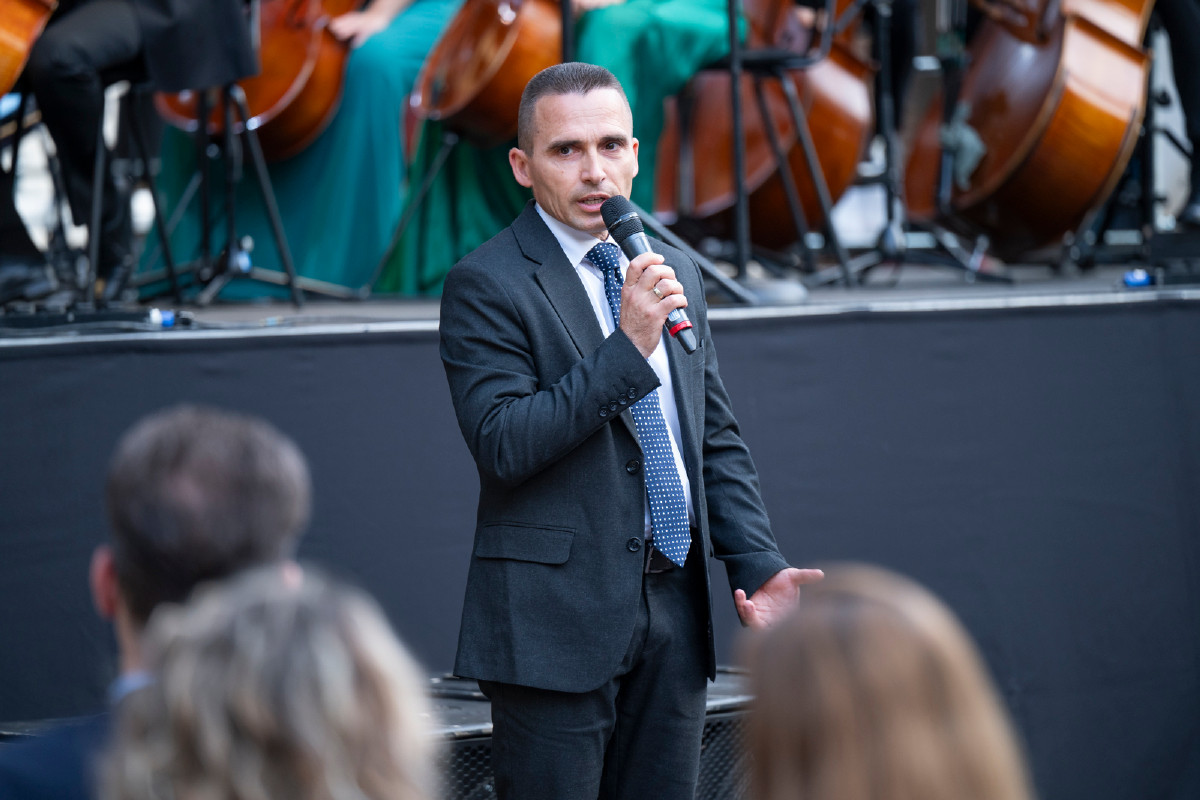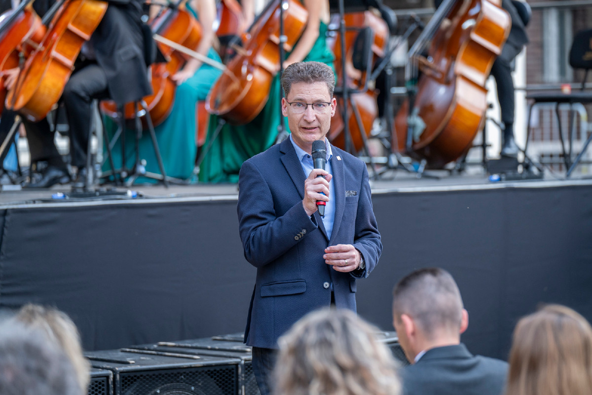 A szimfonikusok nyárköszöntő koncertjén Fehérvár polgármestere Cser-Palkovics András köszönetet mondott a zenekarnak, hogy ismét a Bartók Béla téren koncerttel köszöntik a nyarat, és búcsúztatja az évadot.