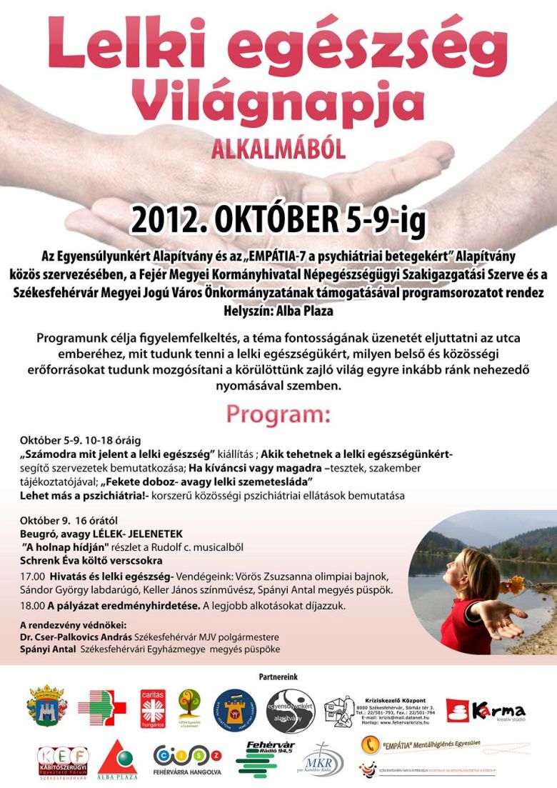 Október 9-én Beugró, avagy lélek jelenetek címmel rendeznek műsort 16 órától az Alba Plazában. A holnap hídján címmel a Rudolf című musicelből hallhatnak részleteket az érdeklődők és Schrenk Éva költő verscsokra hangzik el. 17 órától hivatás és lelki egészség címmel rendeznek beszélgetést Vörös Zsuzsa olimpiai bajnok, Sándor György labdarúgó, Keller János színész és Spányi Antal megyéspüspök részvételével.