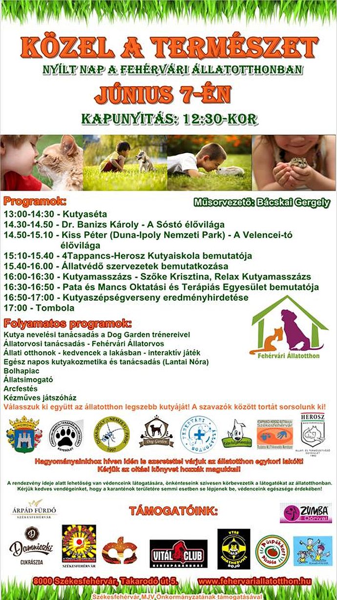 A vasárnapi nyílt nap programjáról további információk olvashatóak a Fehérvári Állatotthon weboldalán.