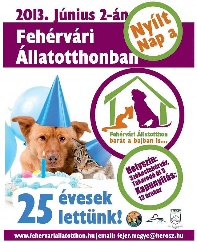 Az év legkiemelkedőbb programját rendezi az idén 25 éves Fehérvári Állatotthon. Vasárnap kora délután közös kutyasétáltatással indul az program, majd lesz számos érdekes és látványos bemutató, tombola sorsolás, és jön Zsók Levente is a Dumaszínházból. Az érdeklődők bejárhatják, megismerhetik az állatotthont és a több száz kutyát és macskát.