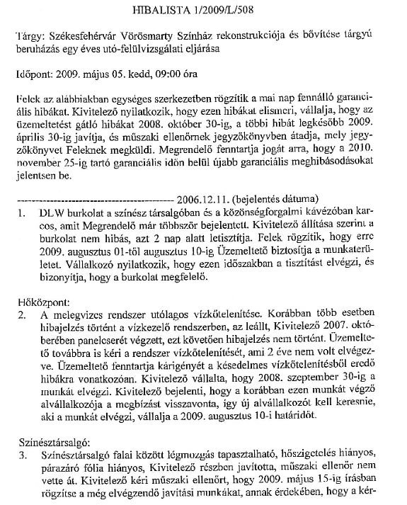 A Polgármesteri Hivatal munkatársai elkészítették a székesfehérvári Vörösmarty Színház rekonstrukciós munkáinak műszaki felülvizsgálatáról, valamint a garanciális feladatok felméréséről készült szakértői vélemény adatvédelmi és szerzői jogi jogszabályoknak megfelelő változatát, és azt nyilvánosságra hozzuk az alábbiak szerint: