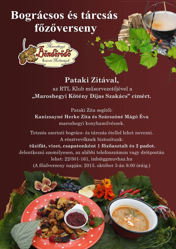 Iszkádi Erika, a Gárdonyi Géza Művelődési Ház és Könyvtár igazgatója a programokról szólva elmondta, amellett, hogy a bográccsal és tárcsával érkezők versenybe szállhatnak a „Maroshegyi Kötény Díjas Szakács” címért, idén az ügyes kezű süteménysütők nevezhetik sós és édes, a szürethez, az őszhöz kötődő alkotásaikat, hogy a zsűri döntését követően elnyerjék a „Maroshegyi Sodrófa Díjas Cukrász” címet.