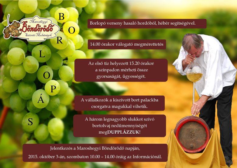 Lesz szüreti felvonulás, borlopó verseny, és nem marad el idén sem a Maroshegyi madárijesztő verseny és kiállítás sem. Ehhez újdonságként hirdették meg a Maroshegyi töklámpás faragó versenyt, amelyre szintén október 3-ig, szombaton 09.00 óráig folyamatosan nevezhetnek elkészített alkotásaikkal a vállalkozó kedvűek.
