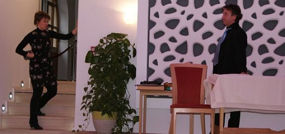 A klasszikus kabaréjelenetek egy részében a művészek idős házaspárt alakítottak. Akárcsak az első, decemberi előadás során, a város polgármestere, dr. Cser-Palkovics András ezúttal is színre lépett és anyakönyvvezetőként bekapcsolódott az utolsó jelenetbe, hogy újra összeadja a csipkelődő, zsörtölődő párt ötven év házasság után. A jelenet nagy tetszést váltott ki a közönség tagjai között.