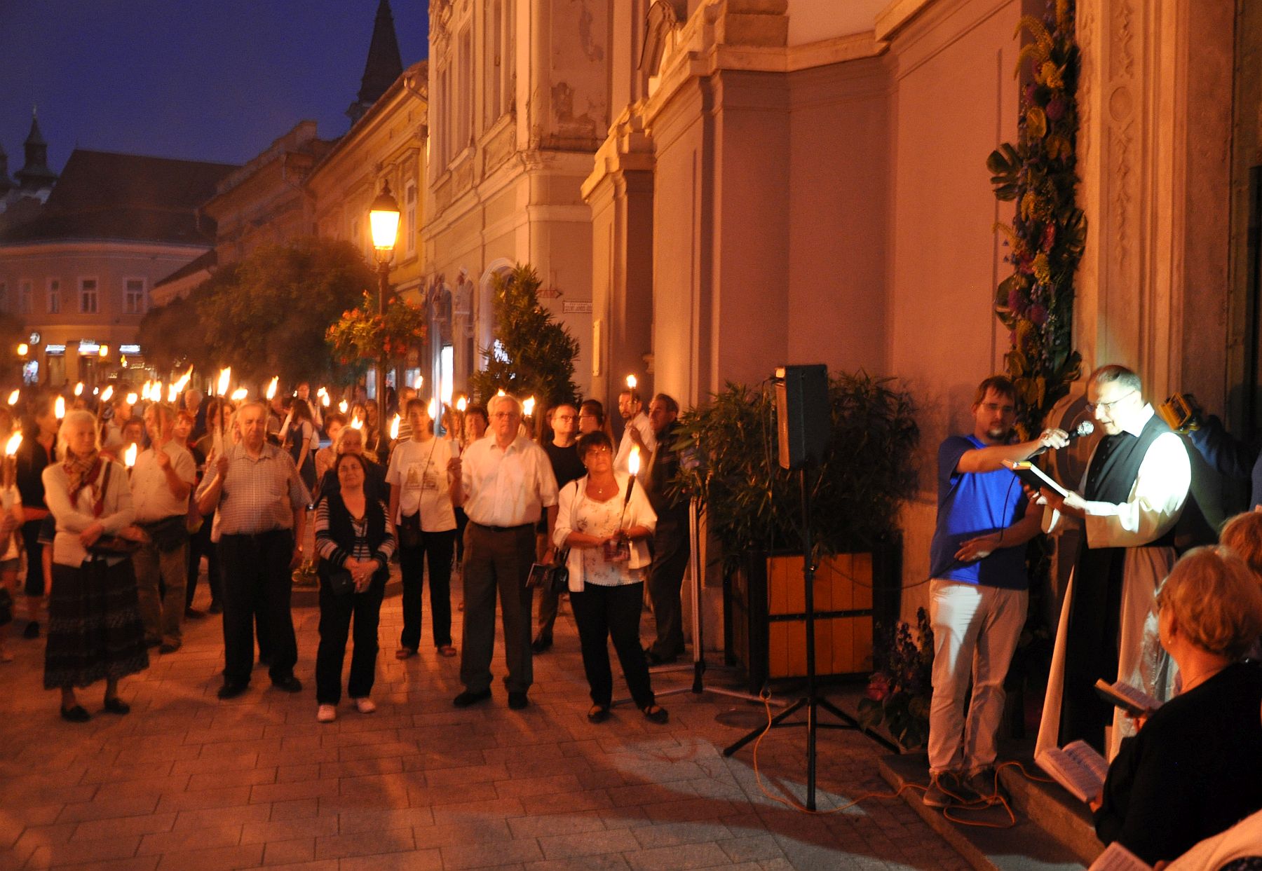 A ciszterci templomnál Brückner Ákos Előd atya és a ciszterci énekkar várta a zarándokokat, végül az evangélikus templomhoz érkeztek, ahol zenés áhitat kezdődött.