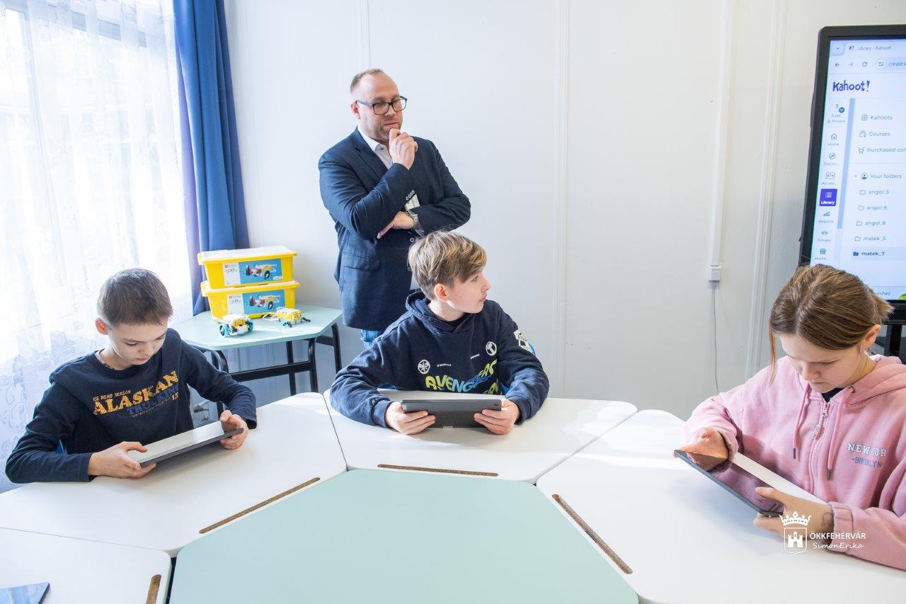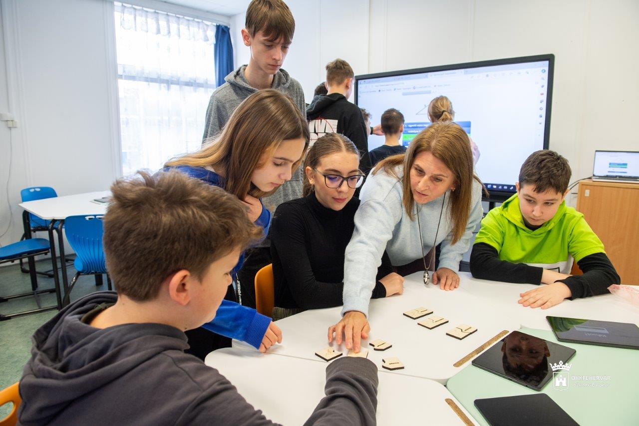 A KÉPES, azaz a Közösségi Értékteremtő Program – Együtt Székesfehérvárért! elnevezésű kezdeményezés keretében újabb okostantermet adtak át csütörtök délelőtt. A Németh László Általános Iskolában kialakított teremben a diákok korszerű digitális eszközökkel, változatosan tanulhatnak. A teremben többek között a csoportos munkához alkalmas bútorok, tabletek, 3D nyomtató, valamint lézervágó és LEGO-k is vannak, melyek mind beépíthetők az órai munkába, legyen szó bármely tantárgyról. Fontos, hogy a program nem merül ki az okostanterem kialakításban, hiszen az Alba Innovár és a Székesfehérvári Tankerületi Központ együttműködésében a Németh László Általános Iskola nyolc pedagógusa részt vesz egy olyan képzésben, melynek során felkészítik őket a beszerzésre került eszközök és a digitális pedagógiai módszerek használatára. A programban szereplő pedagógusok a tudást nem csak a diákokkal, de a kollegáikkal is megosztják, melyből a szerdai átadón egy kis részletet is bemutattak.