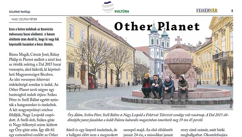 A FehérVár magazin a Layar telefonos alkalmazás segítéségével mutatja be az Other Planet zenekar videoklipjét. A fehérvári vonatkozású együttes az Eurovíziós Dalversenyen is indul. Nagy Zoltán Péter a FehérVár újság főszerkesztője elmondta, hogy ennek segítségével Székesfehérváron első alkalommal kötődik össze szorosan a nyomtatott sajtó és a digitális technika. A zenekar a harmadik elődöntőben szerepel majd február 7-én a Dalban.