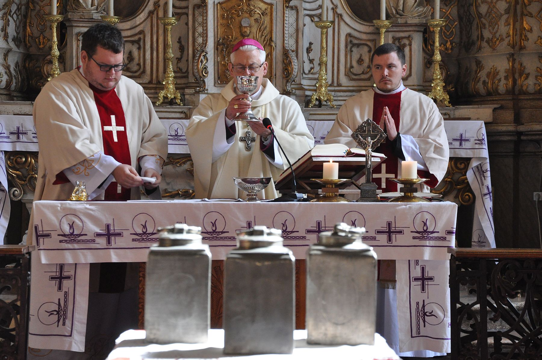 A homíliát követően a Székesfehérvári Egyházmegye papjai megújították szenteléskor tett fogadalmukat, majd körmenetben az oltárhoz vitték és megszentelték az egész évben, a liturgiákon használatos olajakat: a keresztelendők olaját, a betegek olaját, valamint a krizmát, amelyekből a papok magukkal vittek saját plébániáikra.