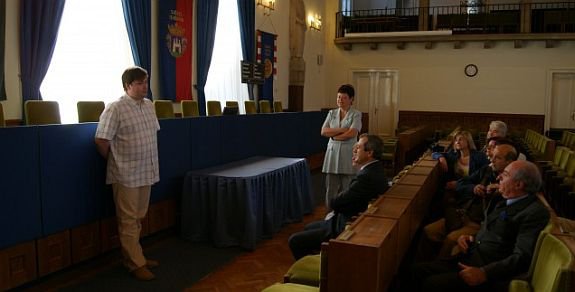 A 15 fős csoportot Róth Péter alpolgármester fogadta a Városháza nagytermében, aki a királyi város történelméről és mai értékeiről is beszélt az olasz vendégeknek. Ezt követően a Hiemer-házban tett látogatást a delegáció és az őket házigazdaként kísérő Farkas Gyuláné, Sárkeszi polgármestere. A delegációt Giancarlo Colarieti polgármester vezeti, aki egyben a körzeti főállatorvos és a településfejlesztéssel foglalkozó alapítványuk elnöke is. Az olasz kistelepülés Rómától kb. 100 kilométerre északra fekszik, egy hegyi falu, melynek lakosai elsősorban állattenyésztéssel és -feldolgozással foglalkoznak.