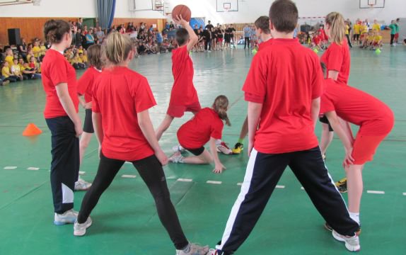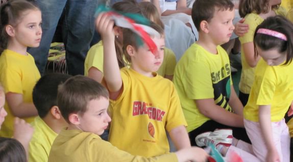 Mert külsőségekben széndékoltan felidézték a szervezők egy-egy olimpiai megnyitó elemeit: sportolók bevonulása, a fáklya érkezése (a lángot még reggel gyújtották meg az iskolában), eskütétel, induló is szerepelt a műsorban. A nyolc számból álló sportos váltóverseny csapataiban minden évfolyamot egy fiú és egy lány képviselt, vezetőik pedig az iskola testnevelői voltak. A feladatokat Botyánszkiné Tóth Ildikó tanárnő álmodta meg, a tornaterem összes mozdítható kelléke és a gyerekek minden képessége szerepet kapott bennük: ügyesség, gyorsaság, együttműködési készség. Igazi csapatmunka zajlott, természetesen hatalmas buzdítás közepette.