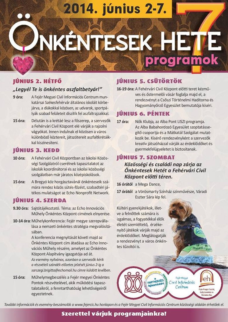 Hazánkban 2011-ben került előtérbe először az önkéntesség. Az Európai Tanács határozata alapján a 2011-es tematikus évet az önkéntesség témájának szentelte az Unió, ekkor terjedt el ugrásszerűen, és kapott nagyobb jelentőséget Magyarországon is a segítő munka. Az Echo Nonprofit Network a tavalyi évben TÁMOP 5.5.2-es, az Unió által támogatott konstrukció keretében hat Önkéntes Pontot nyitott meg Fejér megyében, melyek koordinálását a Fejér Megyei Civil Információs Centrum végzi napjainkban is. A Centrum, tevékenysége során fontosnak tartja az önkéntesség szellemiséget közvetíteni, népszerűsíteni, ezért is szervezte meg második alkalommal az Önkéntesek Hetét.