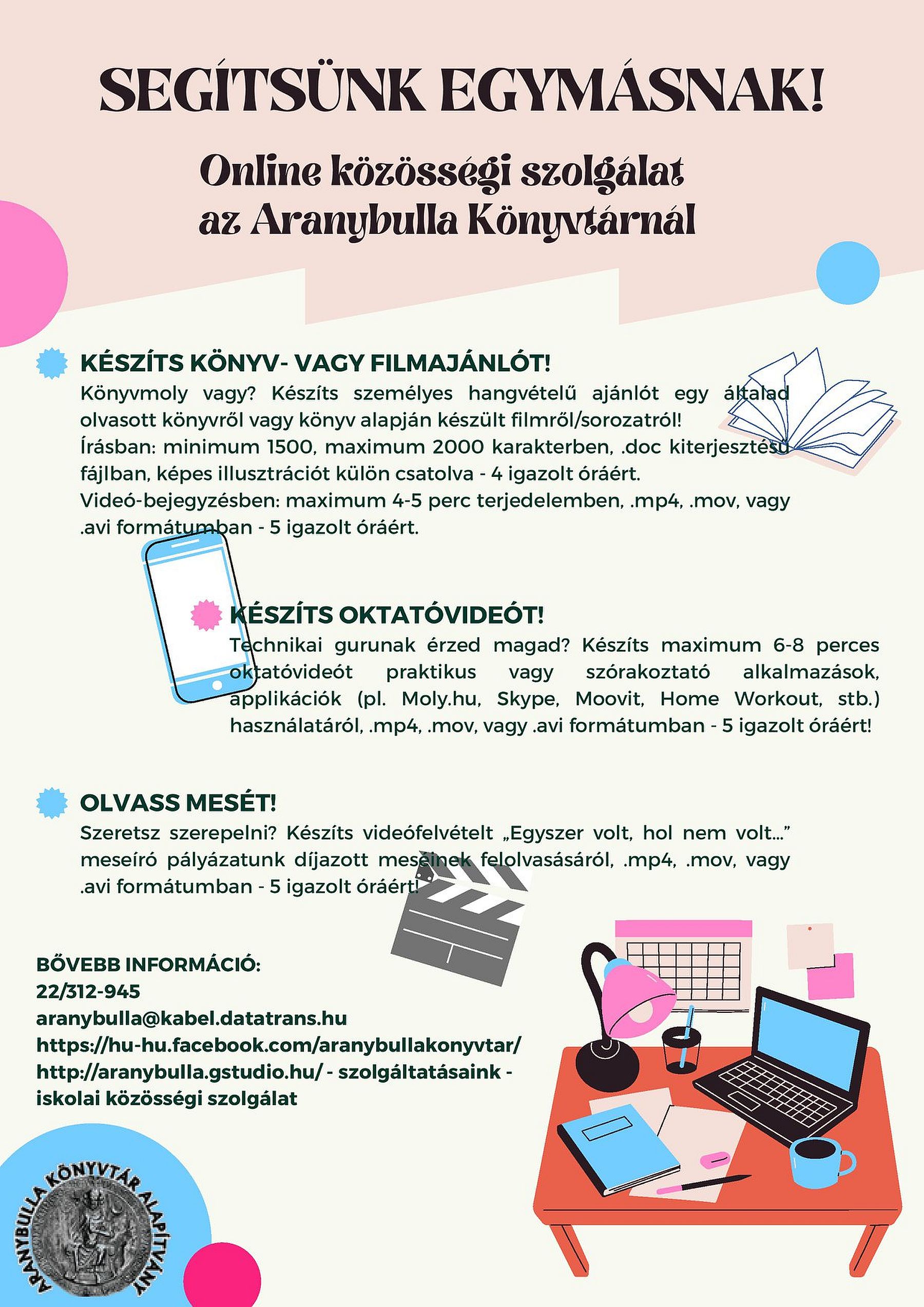 Online teljesíthető az iskolai közösségi szolgálat az Aranybulla Könyvtárban