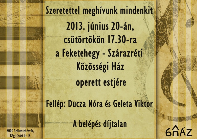Operett estet tartanak a Feketehegy-Szárazréti Közösségi Házban