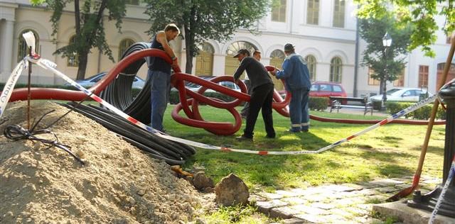 Optikai kábelfektetés a Szent István téri koros platán gyökerei között