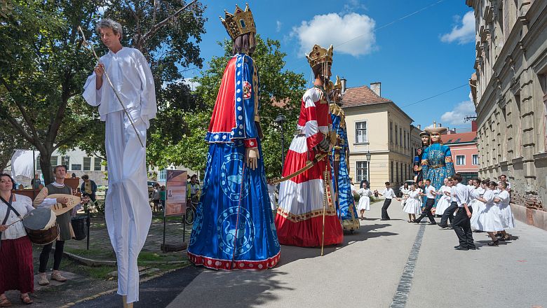 A Koronázási Ünnepi Játékok keretében több érdekes programmal, így középkori vásári életképpel és piaccal is várnak mindenkit a Belvárosban. A programok között kiemelt helyet foglalnak el az eseményszigetek az óriásbábokkal, valamint az óriásbábok zenés találkozója a Magyar Király Szálló előtti téren. A produkciót szombaton és vasárnap is 13, illetve 18 órakor lehet megnézni. Hétfőn ezekben az időpontokban a Városház téren tekinthetők meg az óriásbábok.