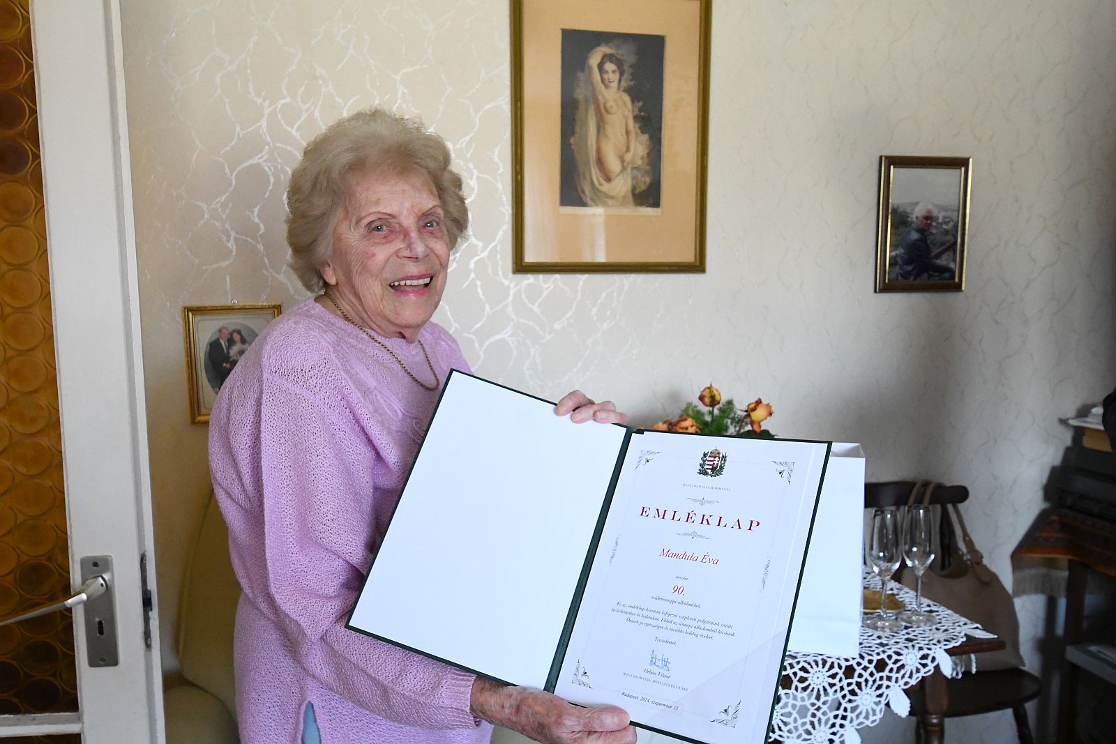 A 90. születésnapját a családtagokkal közösen, vasárnap ünnepelte Velencén. A jeles alkalom tiszteletére Molnár Tamás önkormányzati képviselő is felköszöntötte őt a hagyományos miniszterelnöki gratuláló emléklappal és Székesfehérvár ajándékaival.