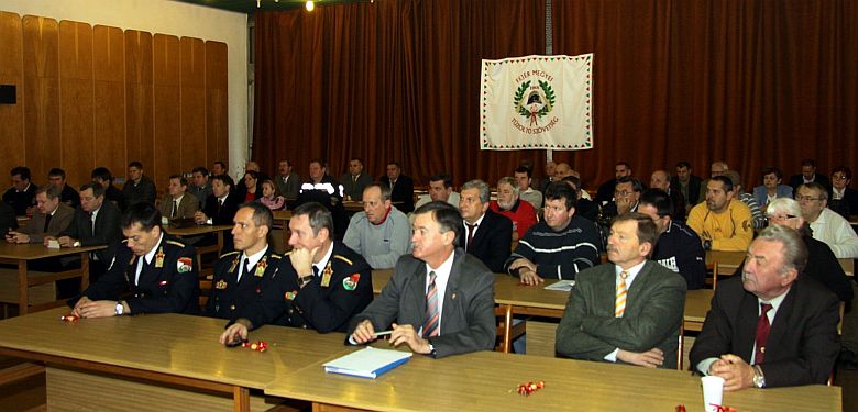 A közgyűlést megtisztelte jelenlétével Dobson Tibor tűzoltó dandártábornok, a Magyar Tűzoltó Szövetség elnöke. Hozzászólásában elsőként a leköszönő elnök munkáját méltatta, ezt követően pedig rátért az egyesületi élet aktuális kérdéseinek ismertetésére. Az országos vezetés három fő célja közül az első a pénzügyi helyzet stabilizálása, a források megteremtése, a második az egységes szakmai képviselet megteremtése, a harmadik pedig a fiatalok aktivizálása. Hazánkban jelenleg négyszázhuszonnyolc első és második kategóriába sorolt egyesületnek van együttműködési megállapodása valamelyik hivatásos tűzoltósággal. A már korábban ismertetett jövő évi háromszáz millió forint értékű felszerelés közöttük fog eloszlani különböző mértékben. Az országos szövetség jelenleg is arra törekszik, hogy a kormányzat ezt az összeget négyszáz millió forintra emelje, ebben az esetben a támogatás összege több mint háromszorosára emelkedne az elmúlt évekhez viszonyítva. Az önkéntes tűzoltó egyesület összetartást sugároz és közösségformáló ereje nélkülözhetetlen egy településen. A középiskolai diákok ötvenórás közösségi szolgálatába nagyon jól beilleszthető lenne a negyven órás alaptanfolyam. A többségéből ugyan nem lesz tűzoltó, azonban a szellemiséget megismeri, alapszintű ismereteket szerez a tűzvédelem területéről, és ha egyik-másik fiatal csatlakozni kíván a tűzoltók nagy családjához az további nyereséget jelent. Az érdekképviselt hatékonysága akkor növelhető, ha az önkéntes, az önkormányzati és a létesítményi tűzoltókat tömörítő három országos szövetségek közösen állnak ki az érdekeik mellett. Ennek megvalósítására munkacsoportot hoztak létre, amelybe mindegyik szervezet két-két főt delegált.