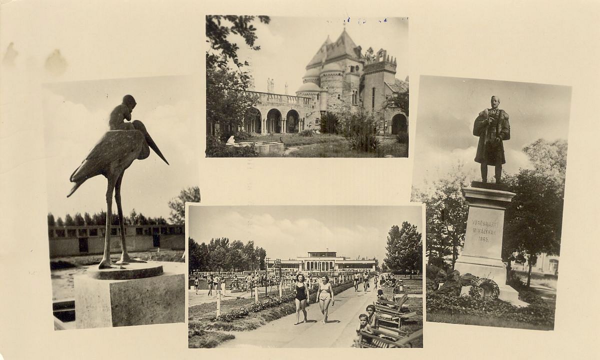 A városi strandfürdő modern létesítményét 1934-ben adták át a nagyközönségnek. Megnyitása óta kedves dísze a gyermekmedence mellett álló szobor: egy gyermek egy gólya hátán. Bory Jenő 1922-ben készítette el az életnagyságú szobrot, és a Műcsarnok kiállításán mutatta be. Hogy miért alkotta meg ezt az érdekes kompozíciót? Magyarázata szerint a huszárt is a gólya hozza, mint a többi gyereket, csakhogy ő már születése után a madár hátán ül, vagyis gólyagol. A szobor talapzatán egy gyermekfejet formázó vízköpő látható. Az alkotás egy másik példányát Budapesten, a Szent János Kórház radiológiai pavilonja előtt helyezték el 1937-ben, kétméteres budakeszi mészkő talapzatán gyermekfejekkel. Eredeti gipszöntvénye, ahogy a többi szoboré is, a Bory-várban áll. Vízhez kapcsolódó témát jelenít meg a Széchenyi Technikum udvarában 2013-ban elhelyezett Szárcsás gyermek című alkotás.