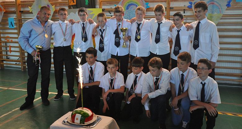 A Felsővárosi Általános Iskola Oberstädtische Grundschule a tanévzáró ünnepségen köszöntötte az iskola III. korcsoportos fiú tanítványait, akik szerdán Pécsen megnyerték az országos röplabda diákolimpiai bajnokságot.