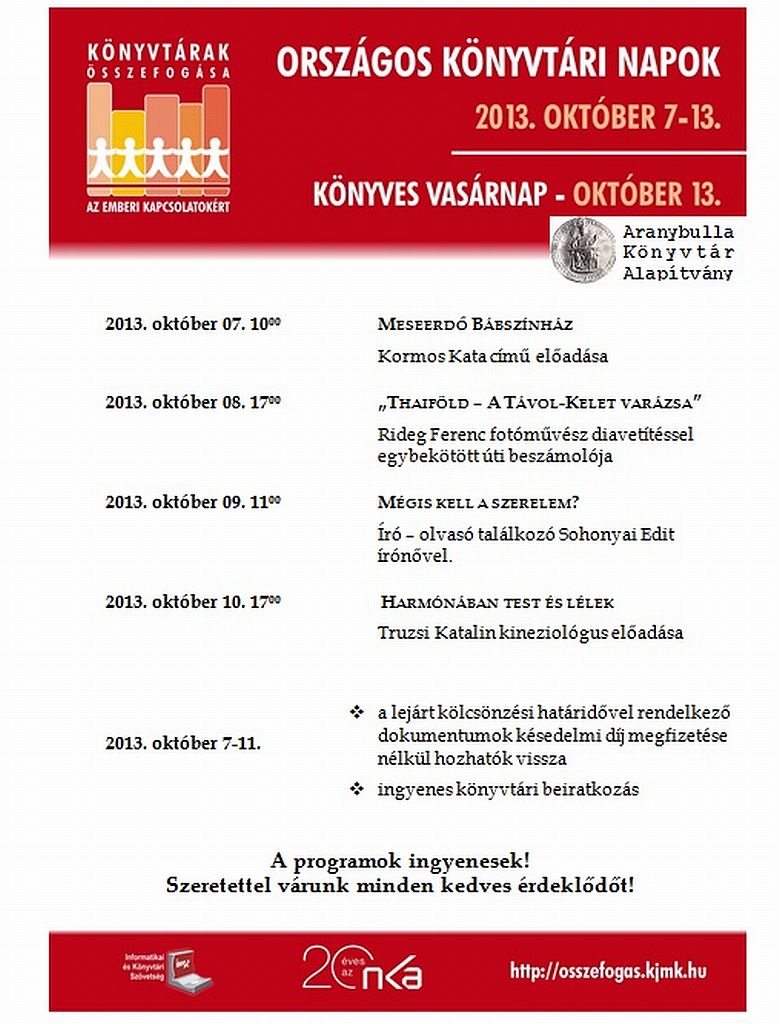 Országos Könyvtári Napok 2013 - összefogás az emberi kapcsolatokért
