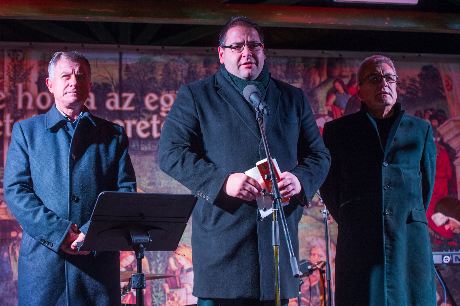 A város alpolgármestere Mészáros Attila, Pál apostoltól idézett gondolatokat és szeretettel kívánt boldog ünnepet a Városház téri adventi színpadon.