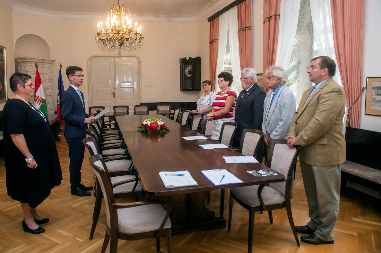 A testület megválasztotta a Helyi Választási Bizottság tagjait. Dr. Pallos István elnök, Képli Mária elnökhelyettes, György László tag, Berdó Gábor Károly póttag, Prépost Károlyné póttag a Városháza Kistanács termében tette le esküjét a Közgyűlés után.