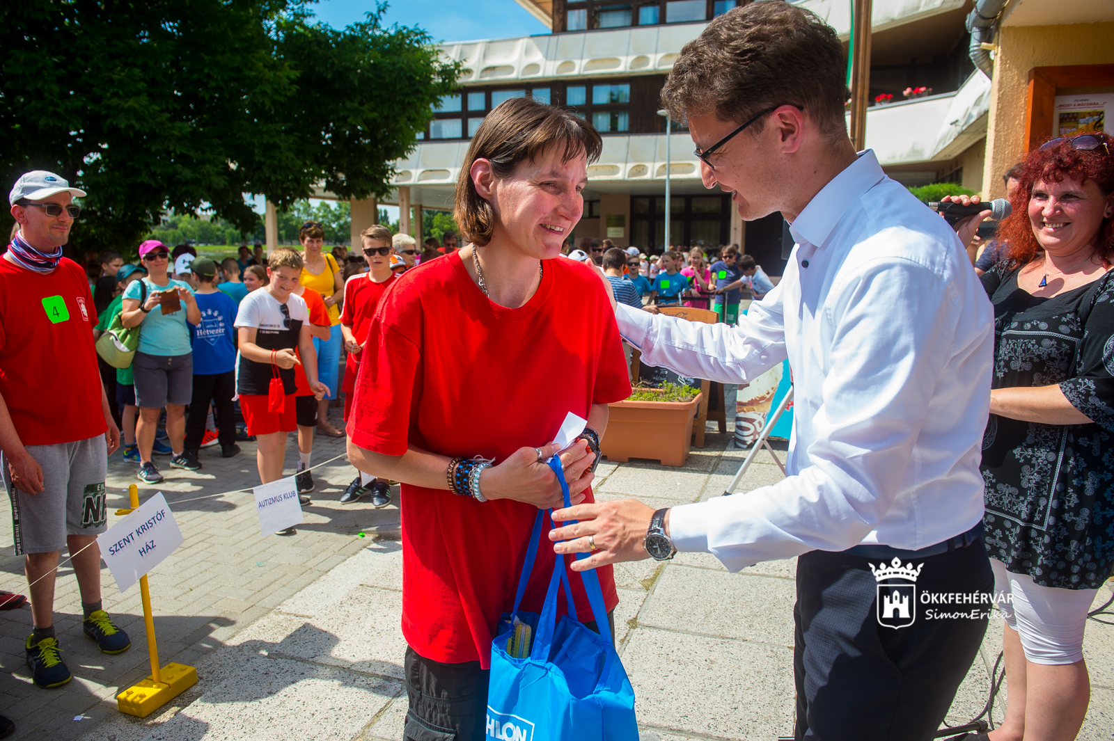 A verseny szervezői ezt követően kiosztották azokat a szalagokat, amelyeket a nevező gyermekek váltó csapatokba osztva a Fehérvár AV19 jégkorongozóival, a MOL VIDI utánpótlás-csapatának tagjaival, az Alba Fehérvár Kézilabda Club ifi kézilabdásaival, az Alba Triatlon SE versenyzőivel, a Dávid Kornél Kosárlabda Akadémia utánpótlás-csapatának, valamint a Videoton Boksz Klub tagjainak és az EMERSON cég képviselőivel közösen fogva futották körbe a Csónakázó-tavat.