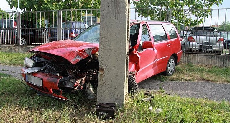 Villanyoszlopnak ütközött egy autó június 16-án, kedden reggel a 7-es főút székesfehérvári szakaszán. A Budai úton haladó autó a bal elejével csapódott a betonoszlopnak, és a járdán állt meg. A balesetben a kocsi bal első kereke is kitörött.