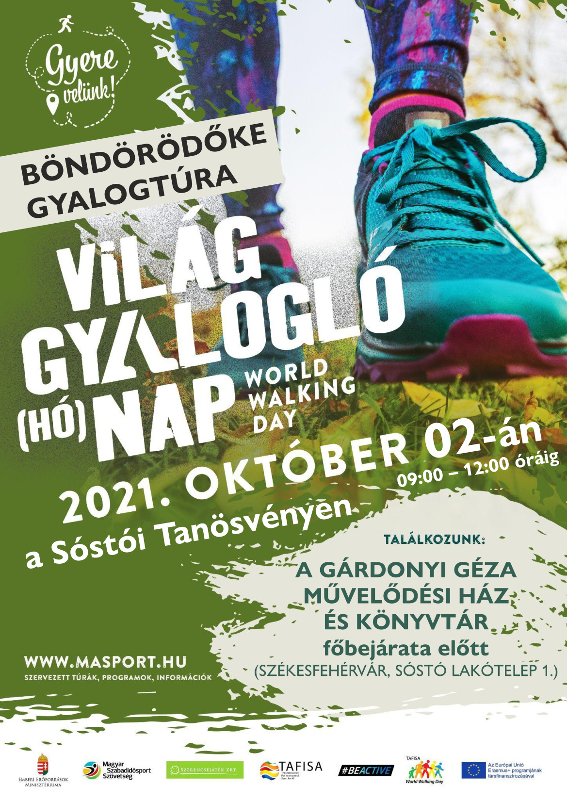 Világ Gyalogló Nap Székesfehérváron: túrák indulnak a Sóstói tanösvény Sárkeresztúri úti bejáratától, az Aranybulla emlékműtől, az Öreghegyi Közösségi Háztól, az István Király Általános Iskolától és a Bory Jenő Általános Iskolától is!