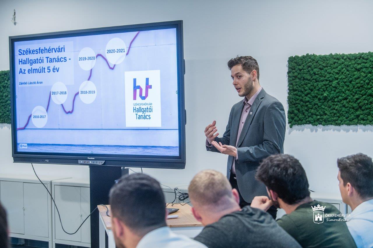 Öt esztendővel, pontosabban – ahogy Zámbó László Áron jelenlegi elnök prezentációjából kiderült – 1858 nappal ezelőtt, 2016. szeptember 12-én tartotta alakuló ülését a Székesfehérvári Hallgatói Tanács. Tizenkét fiatal ülte körül az asztalt akkor dr. Cser-Palkovics András polgármesterrel, Mészáros Attila alpolgármesterrel és Veres Richárd felsőoktatási tanácsadóval közösen, azzal a céllal, hogy elindítson egy fontos kezdeményezést: a Székesfehérvári Diáktanács mintájára, ami az általános és középiskolás korosztályt szólítja meg, kovácsolja egy közösséggé a három fehérvári egyetem hallgatóit.