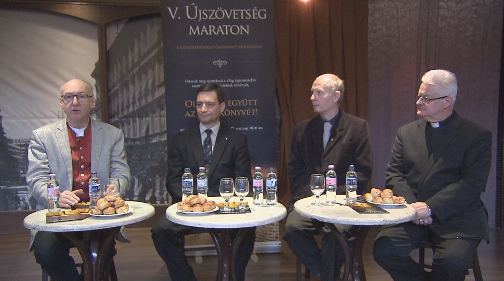 "Ennek a gondolatnak jegyében született meg a bibliafelolvasás koncepciója és ma már mondhatjuk azt, hogy ez az országban egyedülálló program igazi fehérvári program lett, amit természetesen a különböző felekezetekre támaszkodva hirdetünk meg." - tette hozzá a Vörösmarty Színház igazgatója. Az Újszövetség Maraton programjainak ismertetésén jelen volt Spányi Antal megyéspüspök, Somogyi László református lelkészi elnök és Bencze András evangélikus lelkész is.