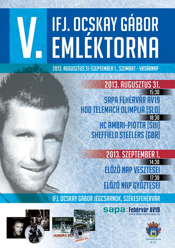 Szombaton és vasárnap a Sapa Fehérvár AV 19 a brit Sheffield, a svájci Ambri-Piotta és a régi nagy rivális Olimpija Ljubljana részvételével rendezik az V. Ifjabb Ocskay Gábor Emléktornát. A szerda délelőtti sajtótájékoztatón elhangzott, jövőre felavatnák Ifjabb Ocskay Gábor szobrát, aki jóval több volt a klubnak és a városnak is, mint sportoló, igazi példakép a fiatalok számára. A tornán a játékosok által viselt mezeket elárverezik, és az ebből befolyt összeget a szobor elkészítésére ajánlják fel.