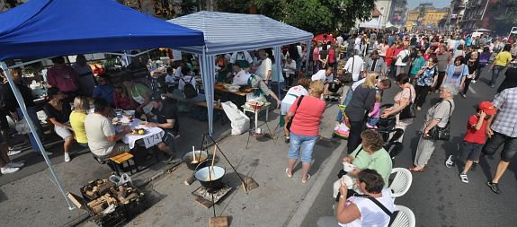 Idén is több tízezer ember látogatott ki a Fehérvári Lecsófőző Vigasság programjaira. A Romkerttől a Városház térig kézműves sátrak várják a látogatókat, a Várkörút teljes hosszában pedig rekord számú, 500 lecsófőző készíti a finom ételeket.