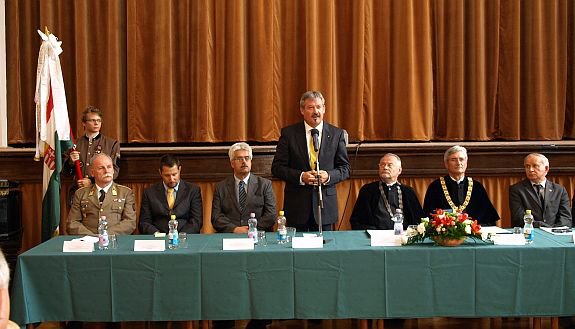 Dr. Mélykúti Gábor dékán köszöntője után Prof. Dr. Neményi Miklós, a Nyugat-Magyarországi Egyetem rektorhelyettese mondott ünnepi beszédet. „ A kar negyven éve tevékenykedik a Nyugat-Magyarországi Egyetem szerves részeként, egyenrangú partnerként folyamatosan alkalmazkodva a gyakorlati igényekhez: ezek nemcsak az itt dolgozók munkáját dícséri, hanem a hallgatókét is.” - mondta el a rektorhelyettes, aki szerint „egy egyetem nemcsak azért egyetem, mert megtalálhatók a különböző diszciplinák, bölcsészet, művészetek, társadalomtudományok, műszaki és természettudományok, hanem azért is mert a diákok és a tanárok közösen élik át a megismerés, felfedezés élményét.”