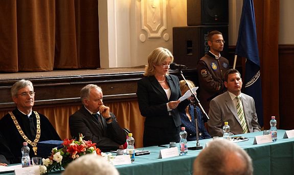 „Életünkben fix pont az épület, a lakóhely, ahol élünk és mozgó alkalmazás az autónk. Legyen az eszköz szintezőgép, vagy föld körül keringő műhold, ahhoz, hogy a helyzetünket meghatározzuk, a Geoinformatikai karon végzettek munkája nélkülözhetetlen az életünkhöz.” - mondta Brájer Éva alpolgármester a jubileum kapcsán, majd felidézett egy 1971-es interjút az akkori GEO igazgatójával, aki a főiskolává válásért küzdött. „És hol tartunk ma?” - tette fel a kérdést az alpolgármester, aki kiemelte, hogy a város bízik a kar jelenében és jövőjében itt Székesfehérváron.