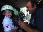 Június 19-én, csütörtökön a felsővárosi ovisok érkeztek a tűzoltóságra, akik Polyák Imre tű. főtörzsőrmester és Guber Zsolt tű. főtörzsőrmester segítségével játékos keretek között próbálhatták ki, milyen tűzoltónak lenni, hogyan kell tüzet oltani.