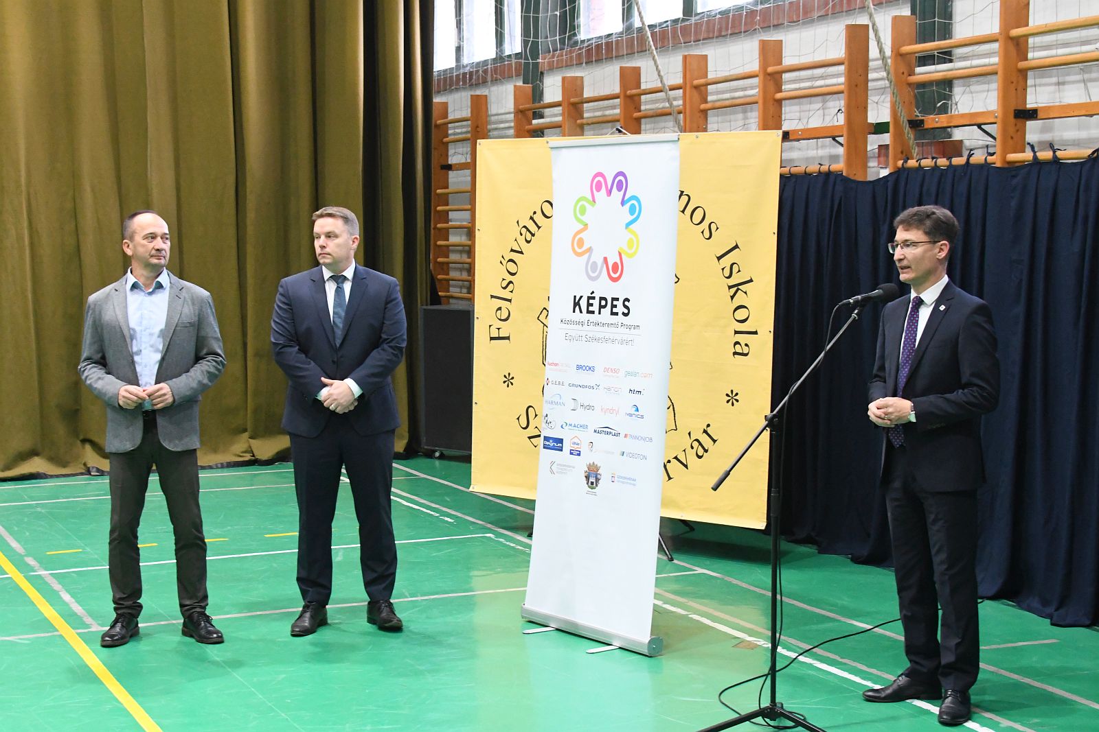 Az esemény előtt dr. Cser-Palkovics András polgármester, Szincsák Attila, a DENSO Gyártó Magyarország Kft. alelnöke és Földi Zoltán iskolaigazgató összegezték a KÉPES program eredményeit.